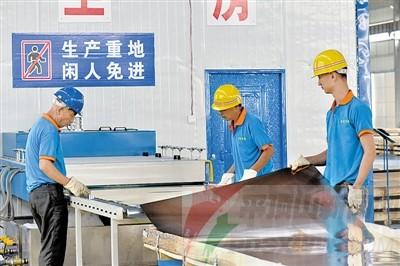 無錫不銹鋼板6月16日訊 6月13日,工人在車間加工彩色不銹鋼板材。